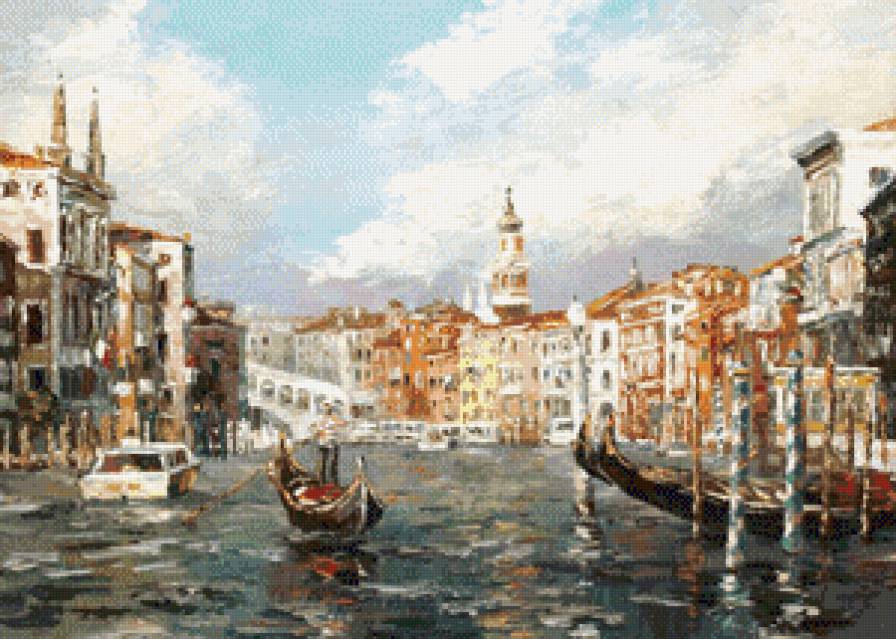 Схема вышивки «Венеция, вода, лодка, картина,живопись, люди» (№1056962)