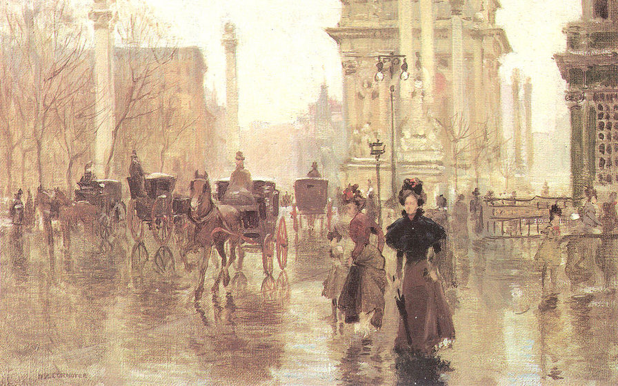 Теги: живопись, город, улица, картина, городской пейзаж, люди.
