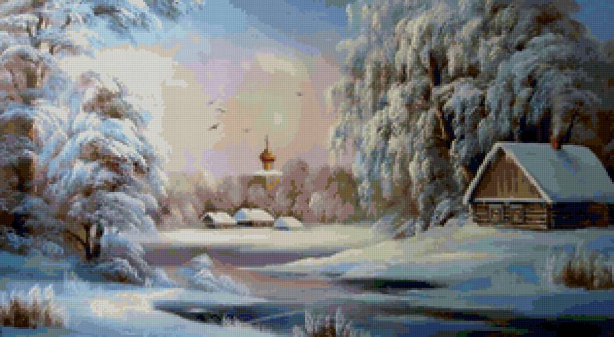 Теги: деревня, живопись, зима, снег, горы, пейзаж, природа, мороз.