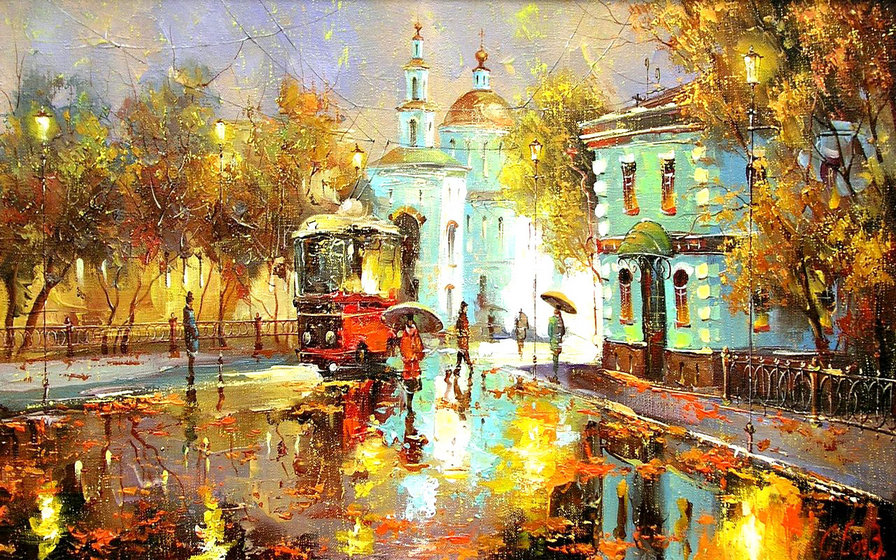 Теги: люди, улица, городской пейзаж, живопись, картина, город.