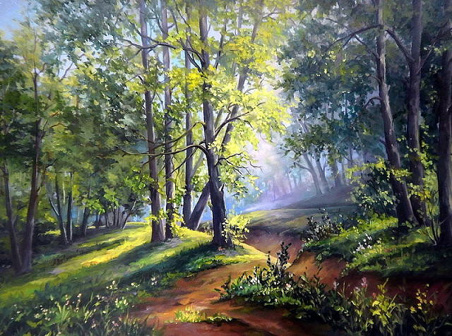 Теги: живопись, дерево, лето, лес, природа, река, пейзаж.