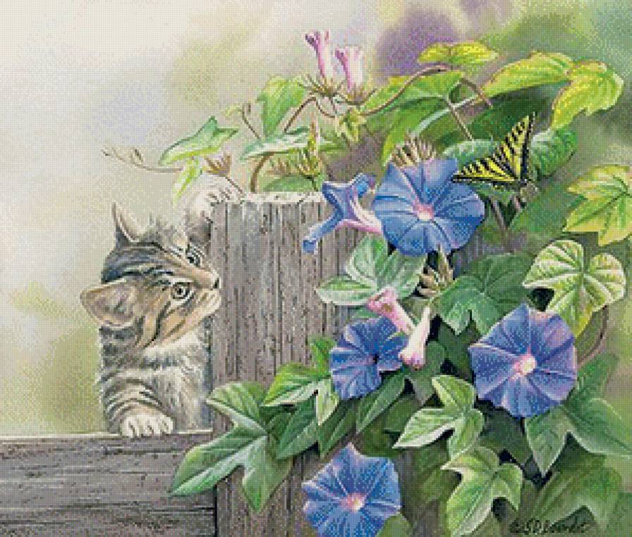 Схема вышивки «Котёнок на заборе» (№1079771)