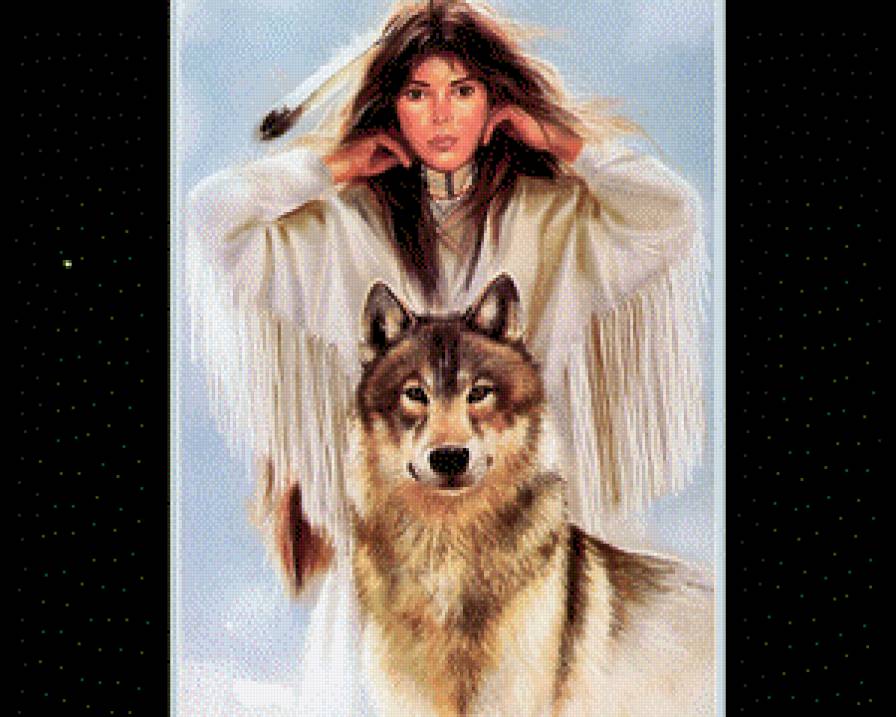 Схема вышивки «девушка и волк» (№1084010)