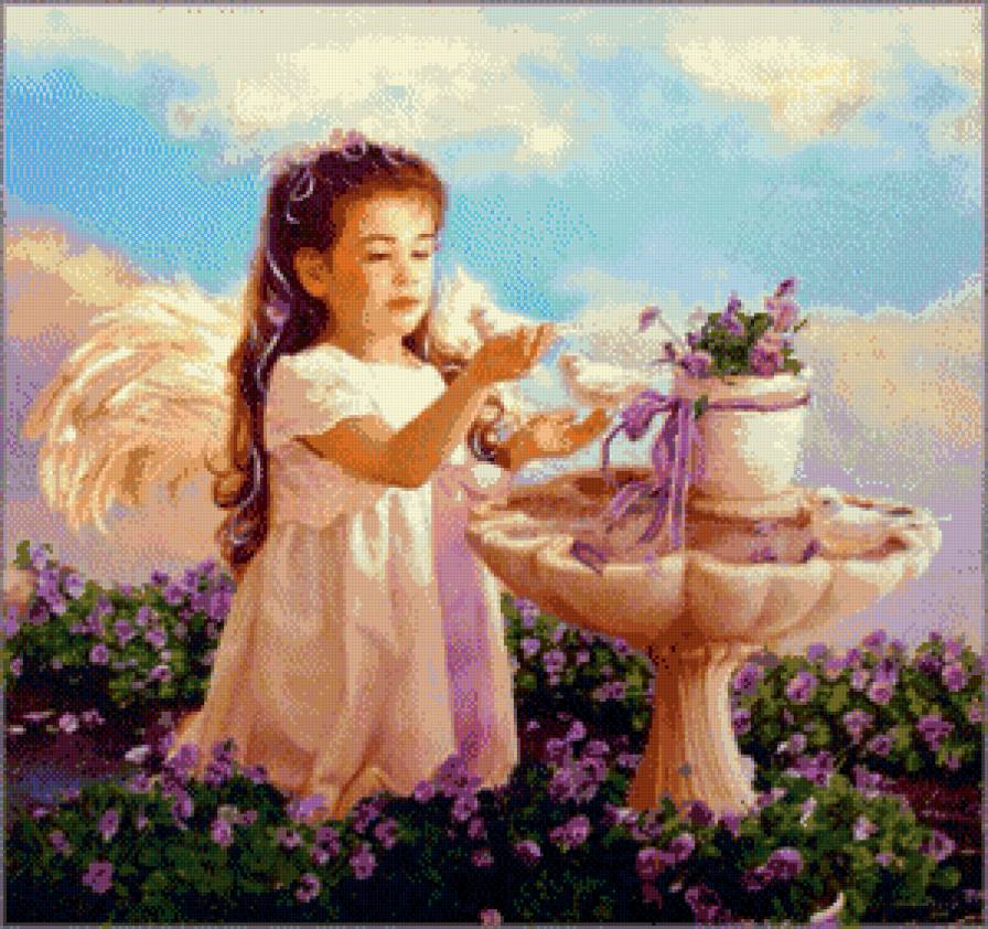 Схема вышивки «Девочка и голубь» (№1098740)