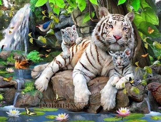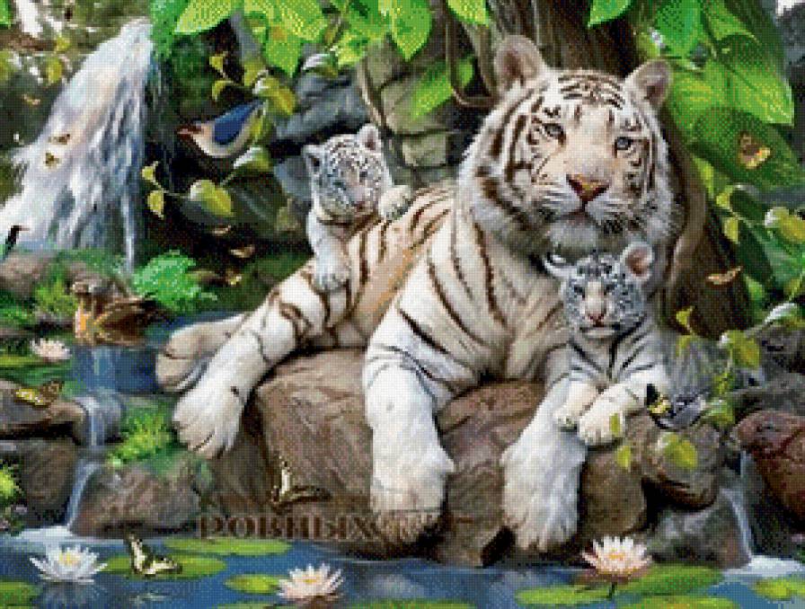 Схема вышивки «Белые тигры у водопада» (№1098744)