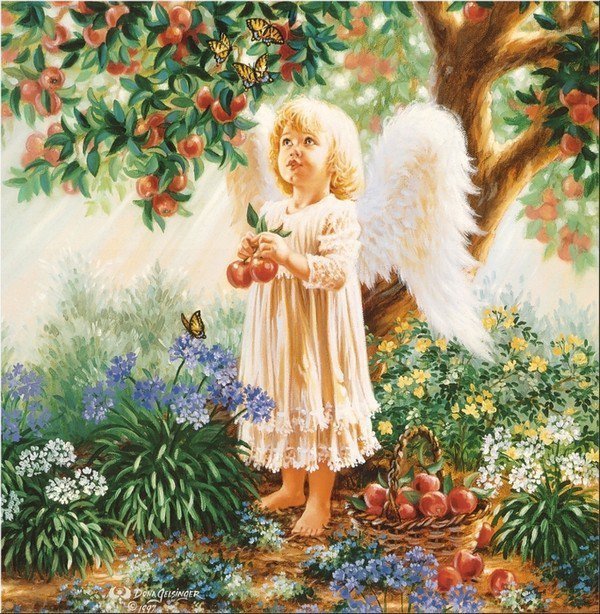 Схемы вышивки, похожие на «Ангелочек с яблоками» (№1100873) по сюжету