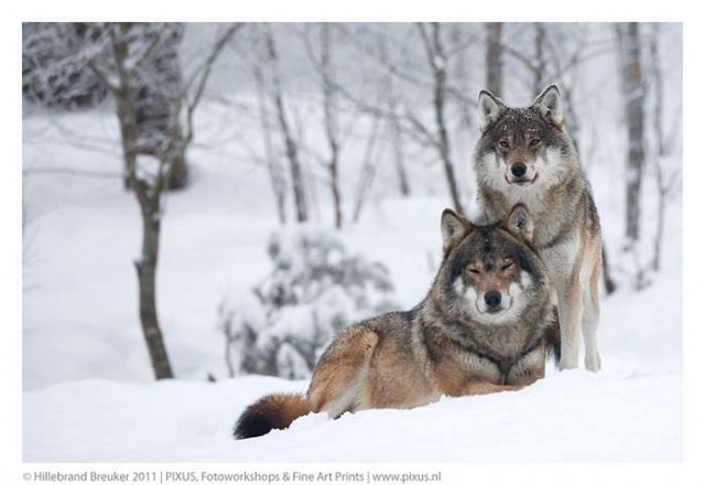 Теги: лес, природа, снег, стая, зима, пейзаж, картина, волки, хищники.