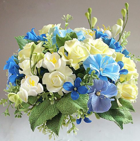 Теги: букет, клематис, розовые цветы, синие цветы, белые цветы.