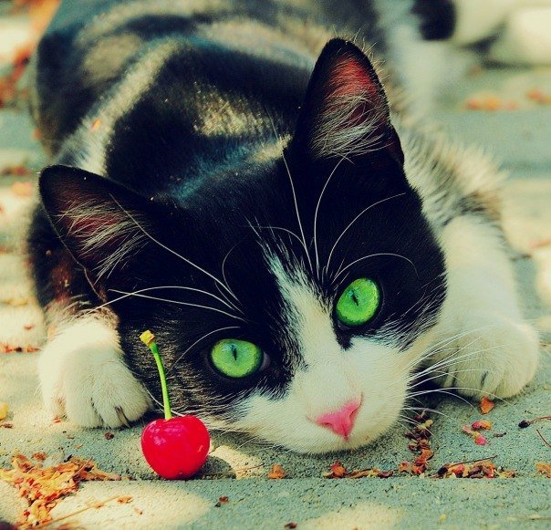 Комментарии к схеме вышивки «котик с вишенкой» (№111553)