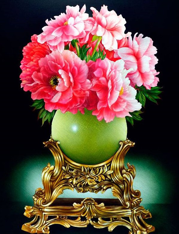 Теги: цветы в вазе, натюрморт, цветы, розовые пионы, пионы, розовые цветы.