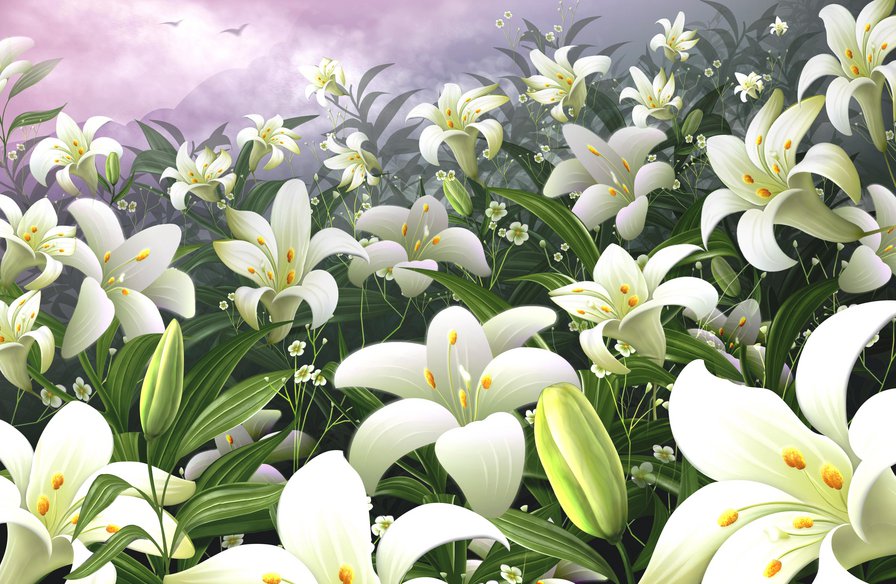 Схема вышивки «Белые лилии» (№1126994)