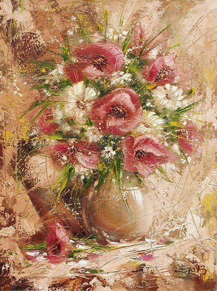 ----,еще одна спорная картина,то ,что в оригинале выглядит как интересные мазки-в вышивке будет ни о чем,расплывчатое изображение похожее на кашу из цветов...если уж браться - равномерка от № 25 и мельче.