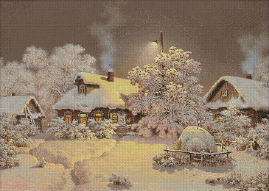 Схема вышивки «Зимний вечер в деревне» (№1134835)