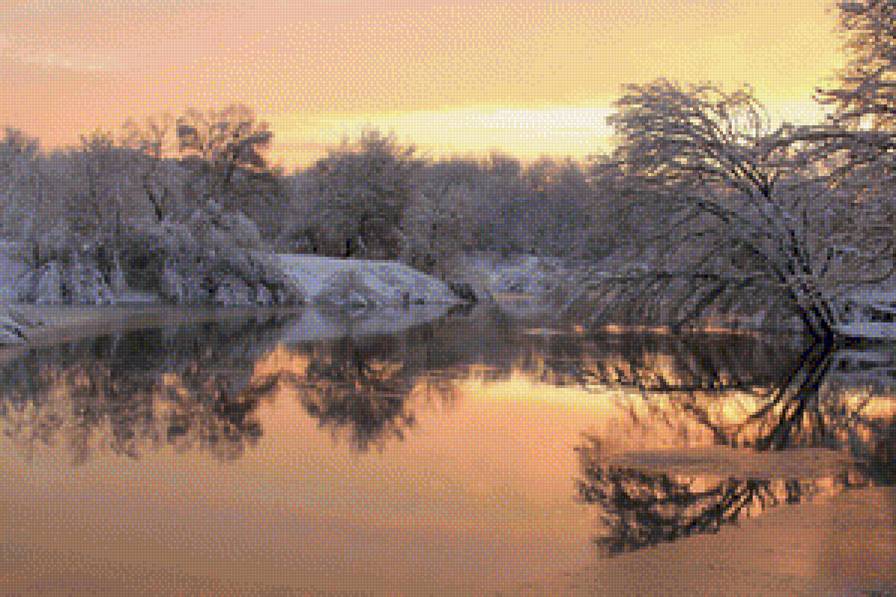 Теги: мороз, снег, река, ива, закат, деревья, зима.
