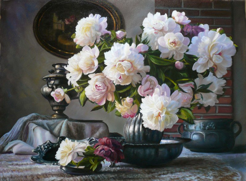 Теги: цветы, ваза, желтые цветы, натюрморт, букет, цветы в вазе, живопись.