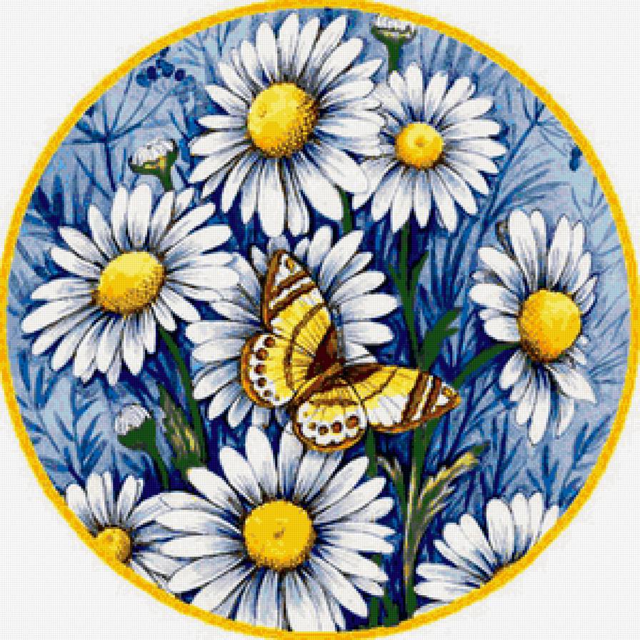 Схема вышивки «Ромашки и бабочка» (№1207211)