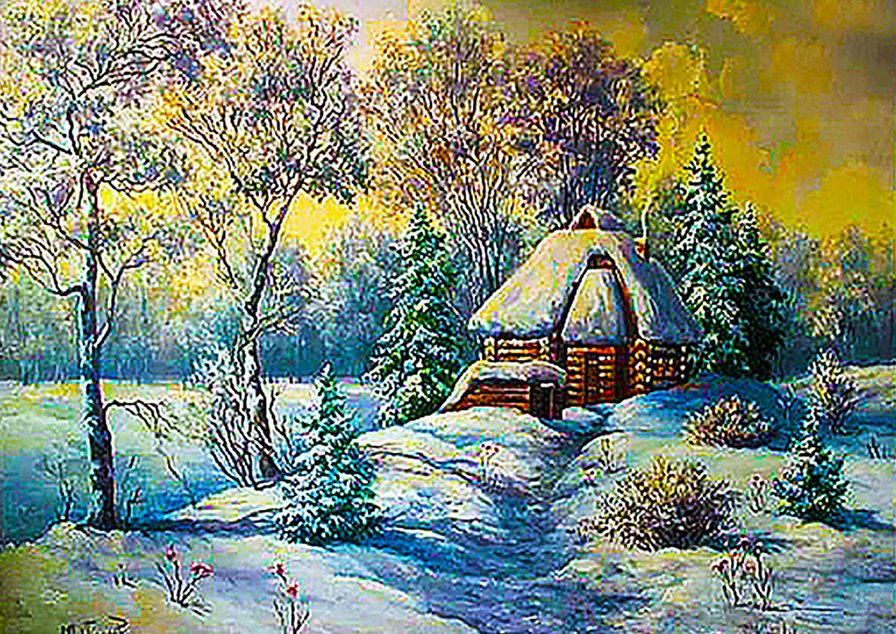 Схемы вышивки, похожие на «зимний домик в лесу» (№1207797) по сюжету