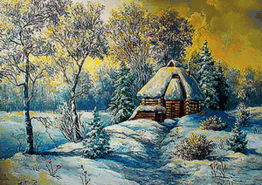 Схема вышивки «зимний домик в лесу» (№1207797)
