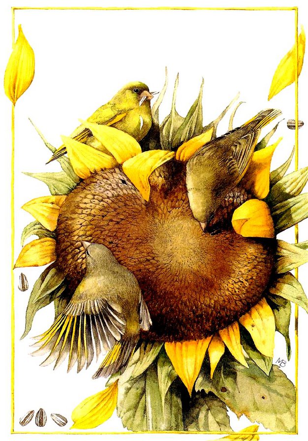 Комментарии к схеме вышивки «птицы на подсолнухе» (№121140)