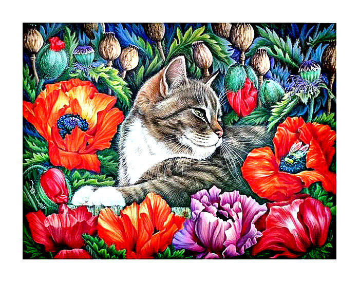 Схемы вышивки, похожие на «котик в маках» (№1214243) по сюжету