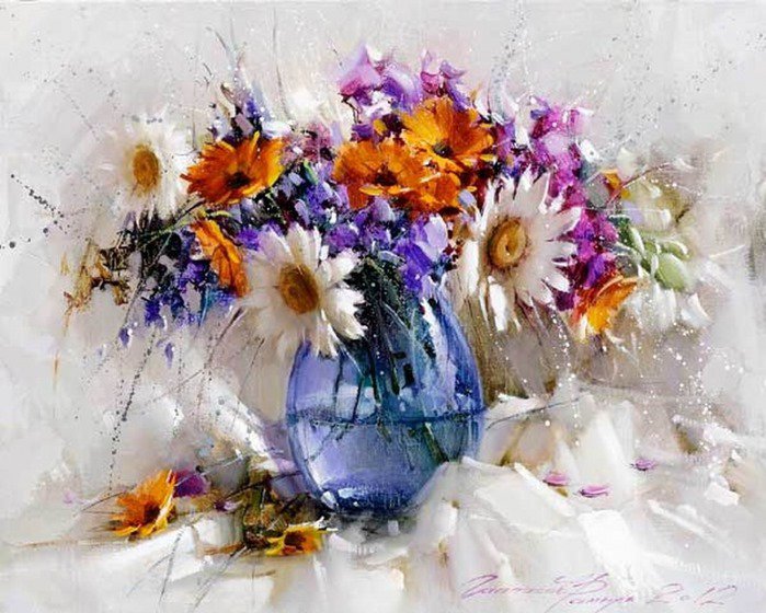Теги: астры, васильки, белые цветы, букет, синие цветы, розовые цветы.