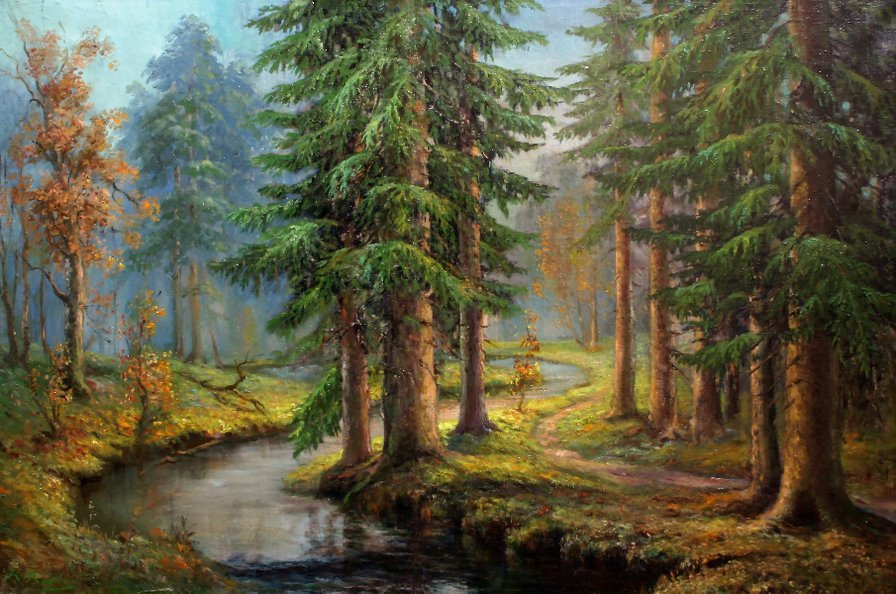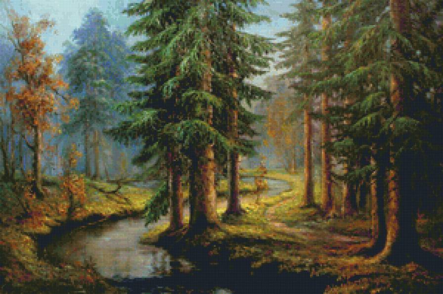 Теги: пейзаж, олени, водяная мельница, река, осень, лес, природа.