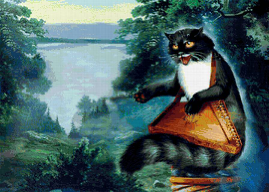 Схема вышивки «КОТ С ГУСЛЯМИ» (№1230447)