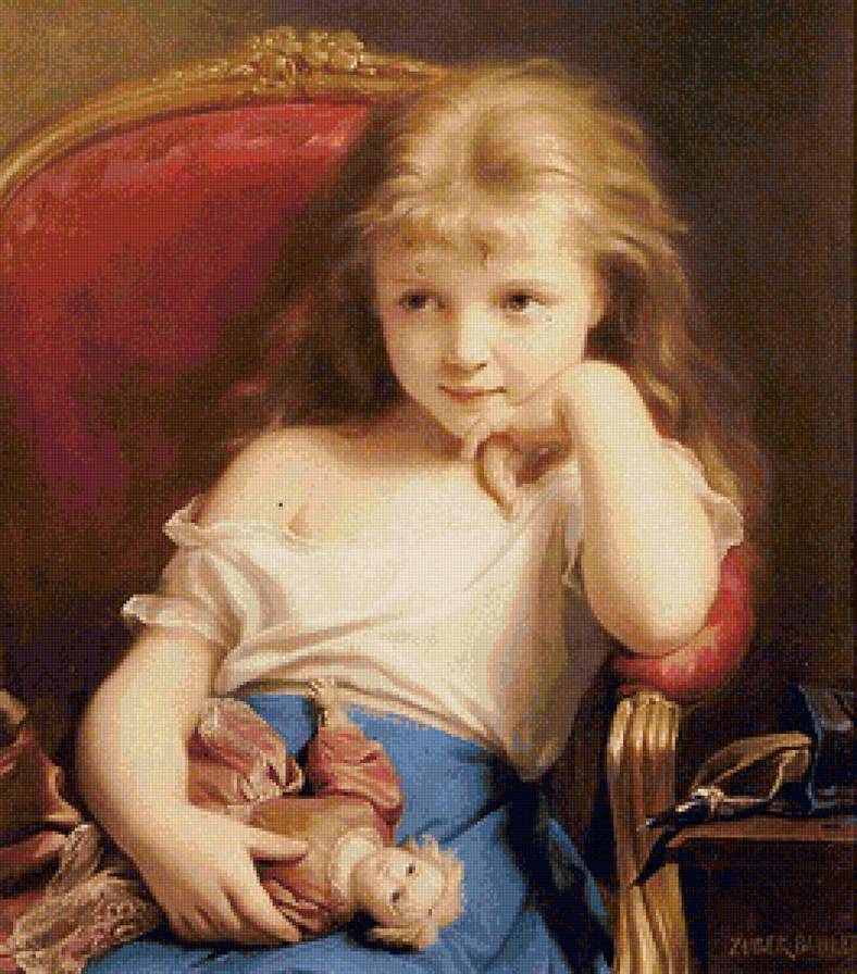 Схема вышивки «девочка с куклой» (№1233354)