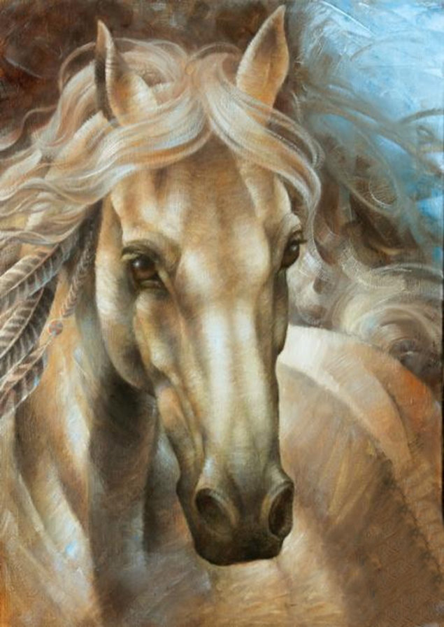 Теги: животные, живопись, природа, лошади, белая лошадь, кони.