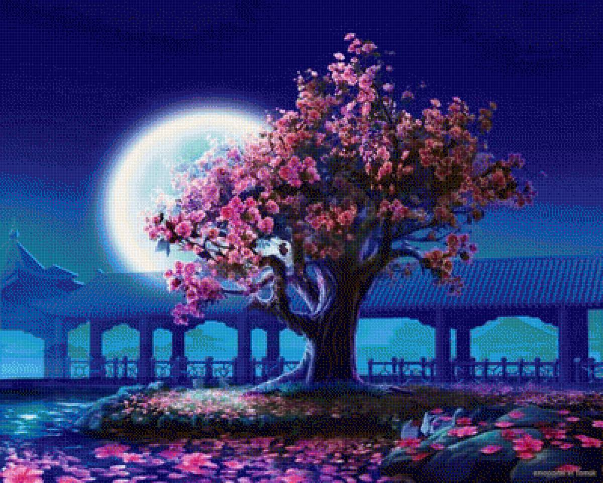 Схема вышивки «сакура при полной луне» (№1246215)