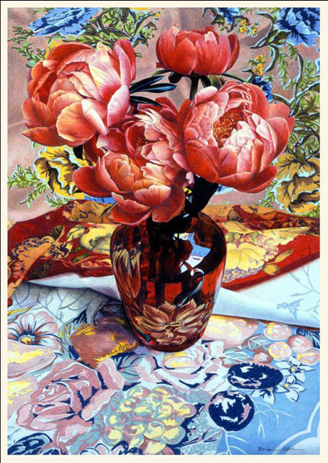 Теги: розы, интерьер, пионы, натюрморт, узоры, цветы, посуда, букет.