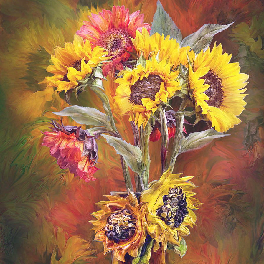 Теги: живопись, цветы, букет, подсолнухи.