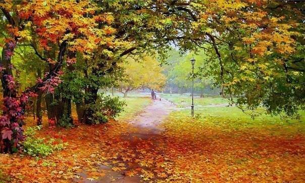 Теги: осень, пейзаж, скамейка, парк, живопись, мост, природа.