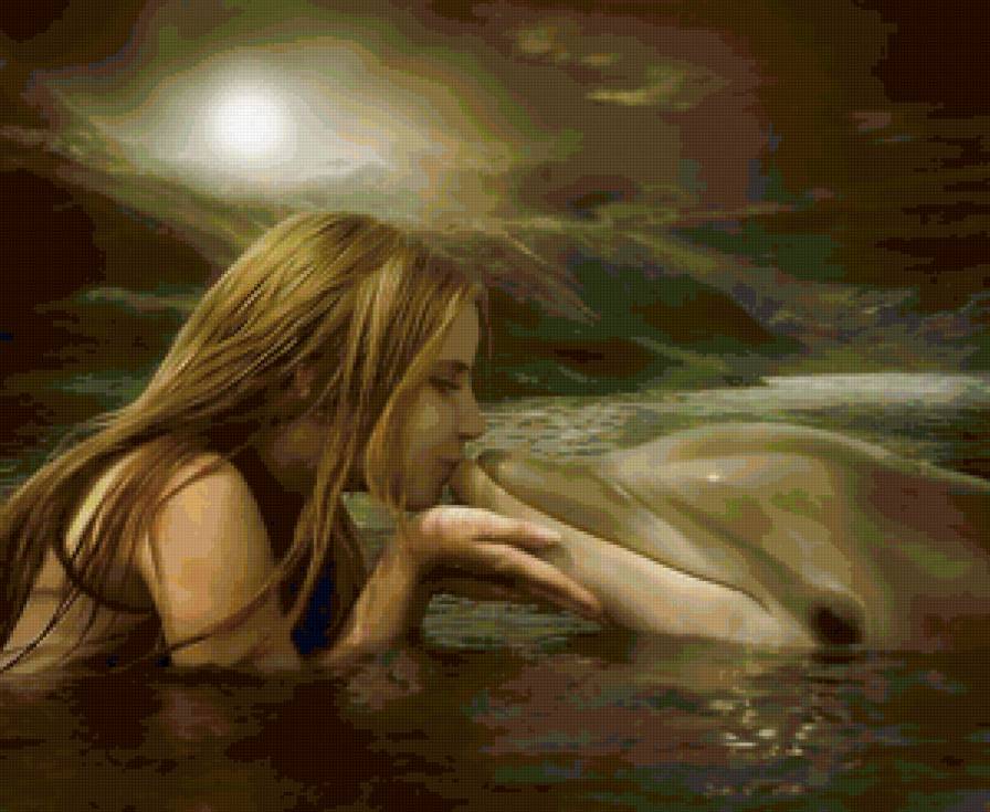 Схема вышивки «Девушка и дельфин» (№127555)