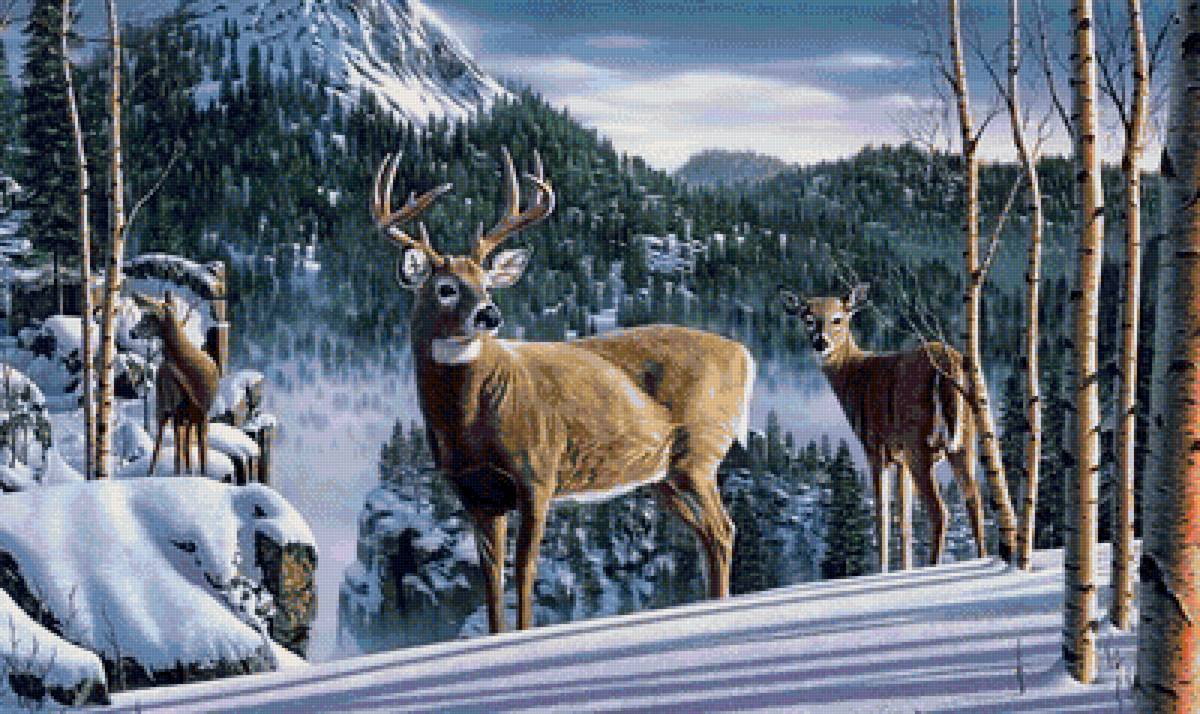 Схема вышивки «олени в лесу» (№1284592)