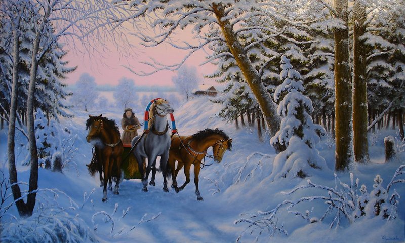 Теги: тройка, лошадь, зима, кони.