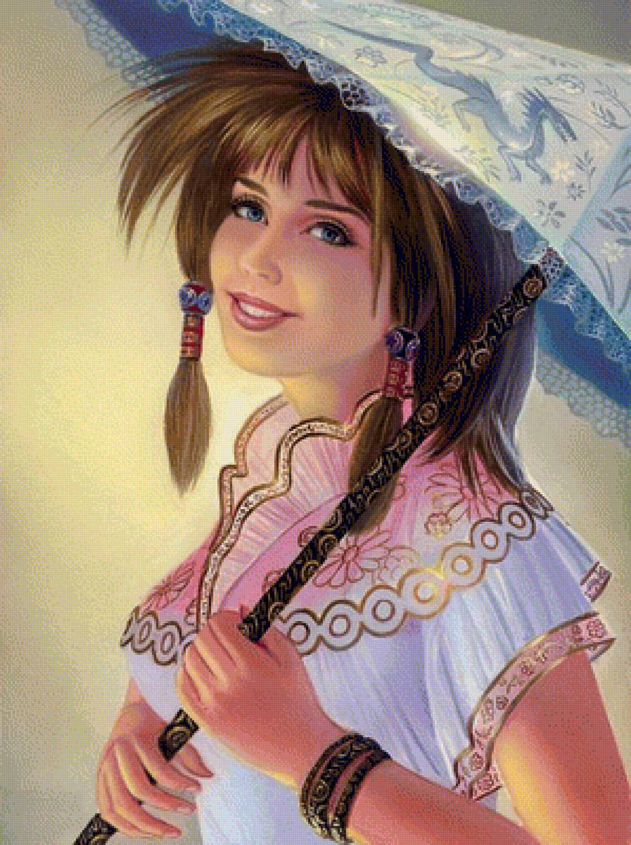 Схема вышивки «девушка с зонтиком» (№1338470)