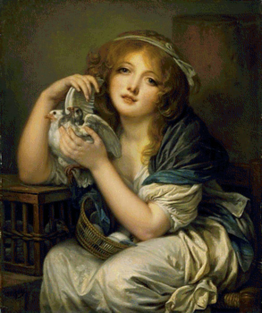 Схемы вышивки, похожие на «девушка с голубями» (№1343154) по сюжету