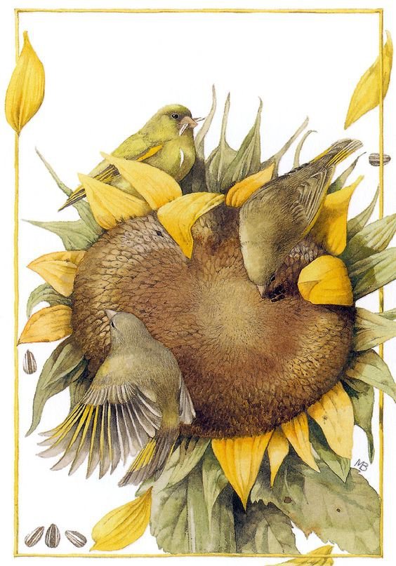 Комментарии к схеме вышивки «подсолнухи и воробьи» (№1343995)