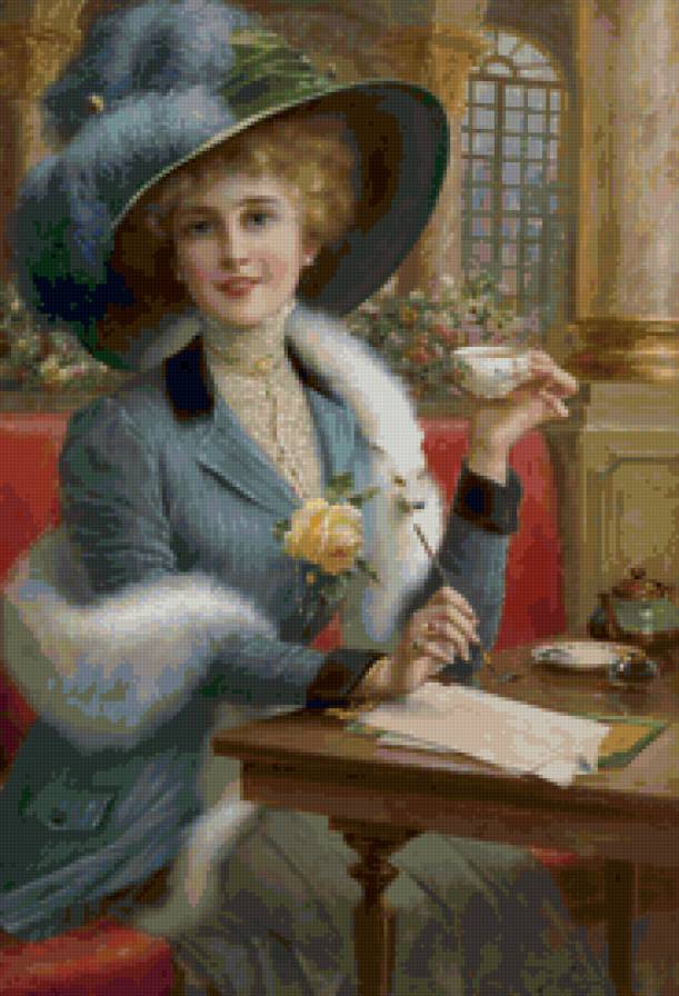 Схемы вышивки, похожие на «дама за чашкой кофе» (№134443) по сюжету
