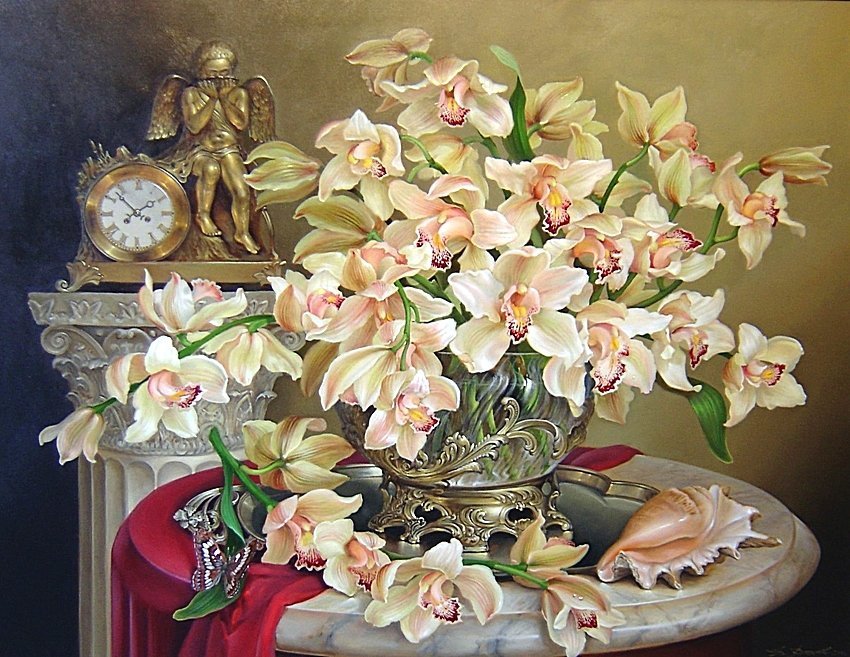 Схема вышивки «Орхидеи на столе» (№1349465)