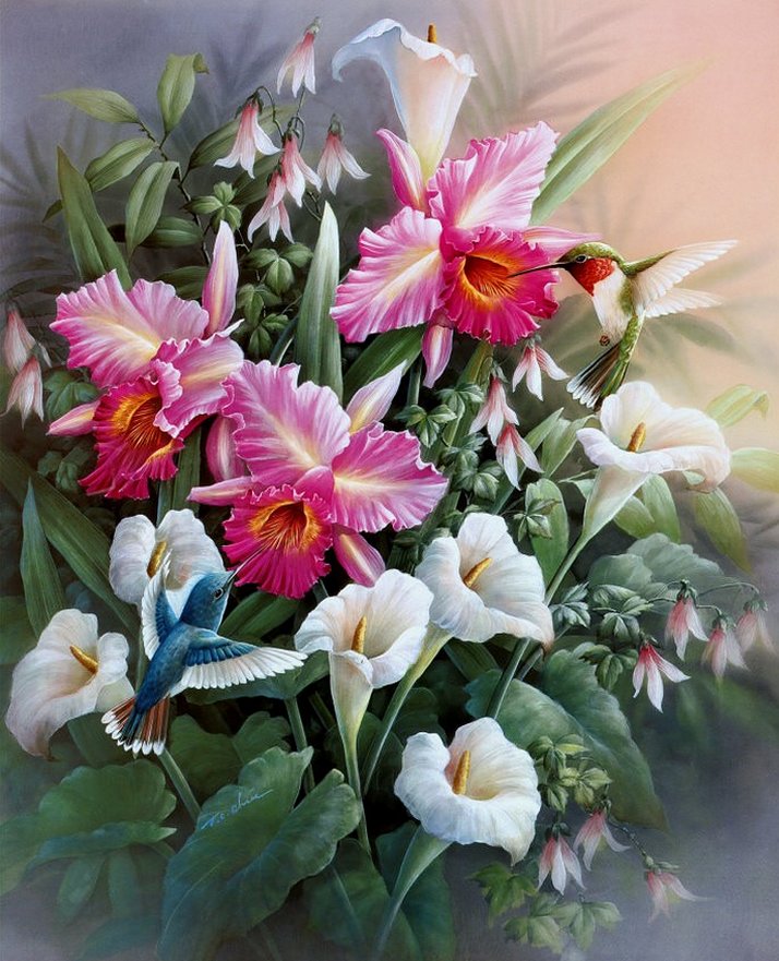 Схема вышивки «Птички в цветах» (№1354723)