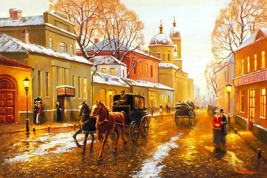 Теги: улица, люди, городской пейзаж, живопись, картина, город.