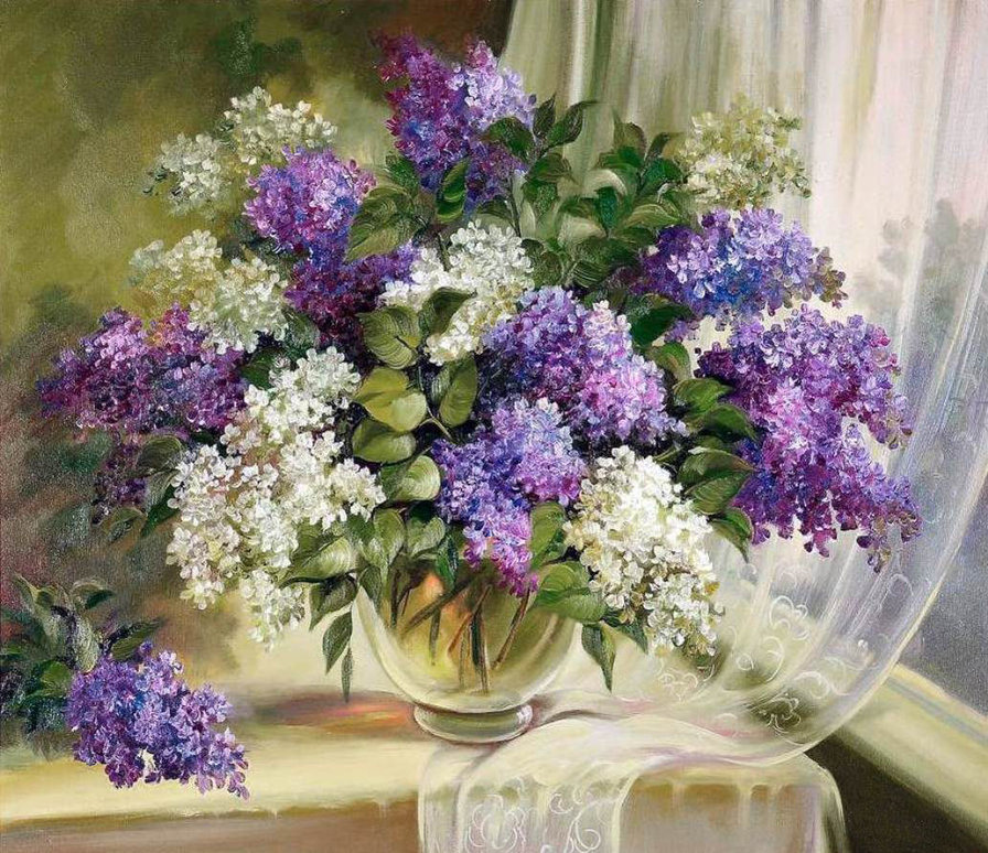 Теги: тюльпаны, живопись, картина, весна, цветы, ваза, букет, сирень.