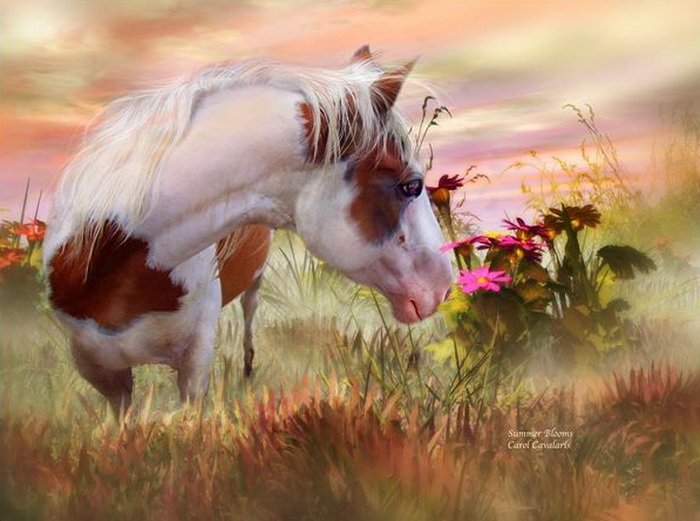 Теги: природа, животные, розы, цветы, картина, кони, лошадь.