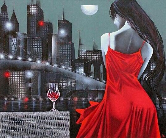Теги: живопись, девушка, цветы, птица, картина.