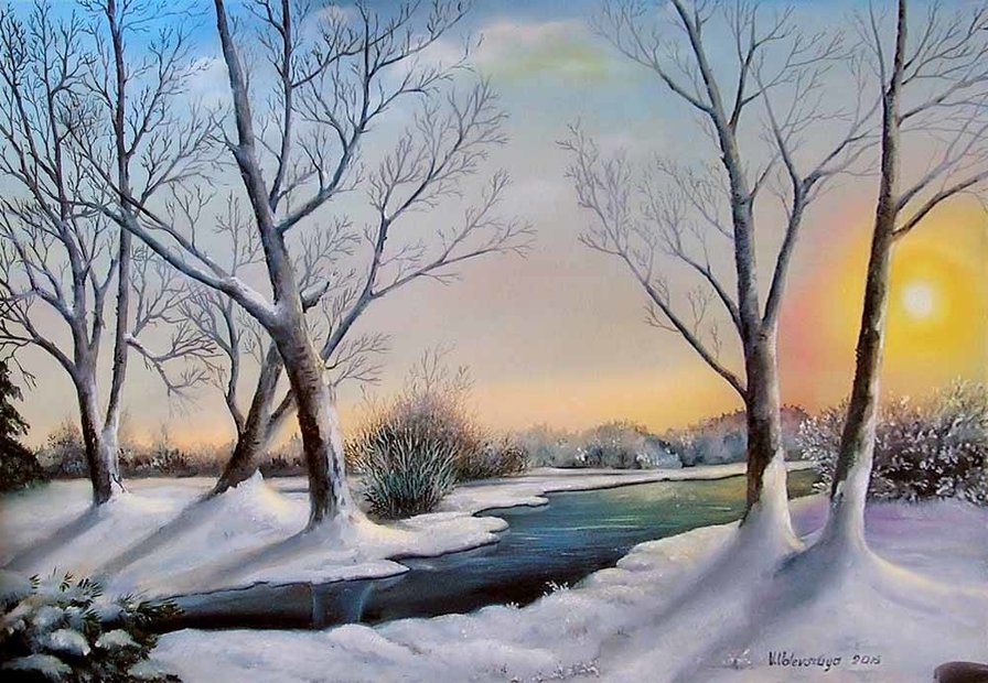 Теги: пейзаж, береста, березки, природа, зима, река, церковь, снег.