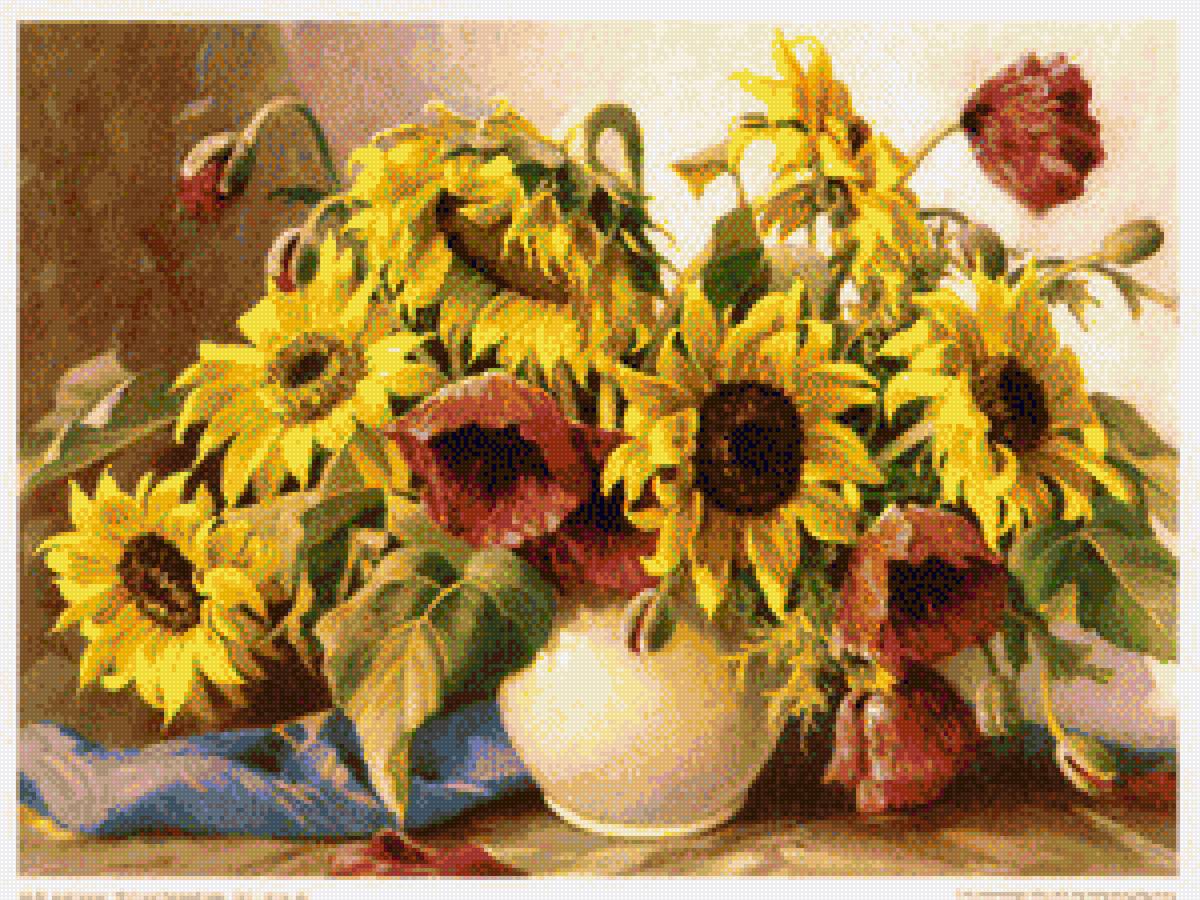Схемы вышивки, похожие на «подсолнухи и маки» (№1410266) по сюжету