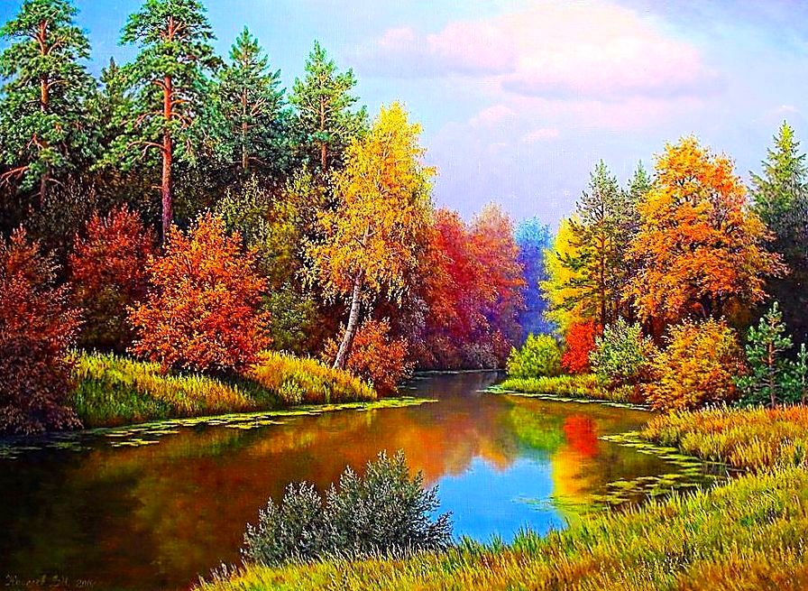 Очень красивый пейзаж! И хорошая схема, отчетливо видно отображение в воде, им и такое буйство красок!!!!