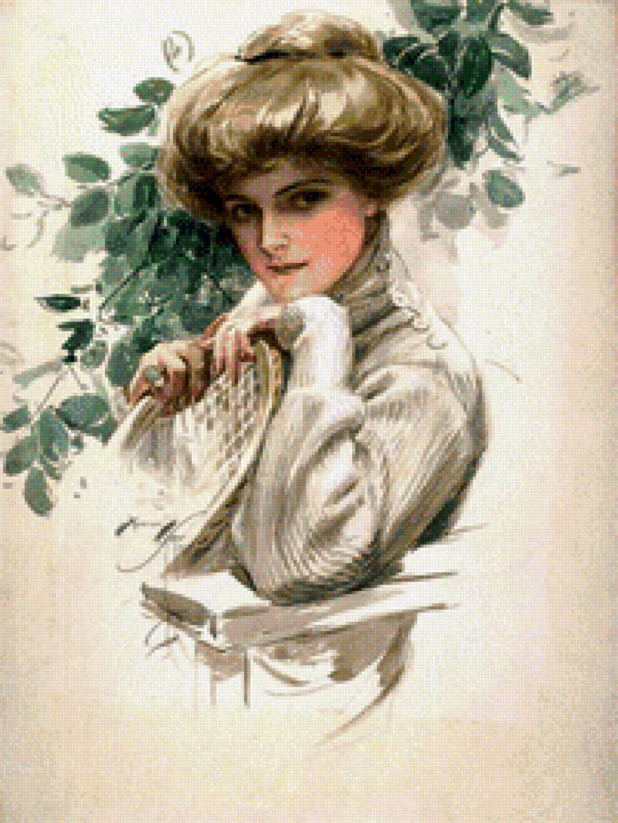Схема вышивки «Вдумчивая девушка» (№1444292)